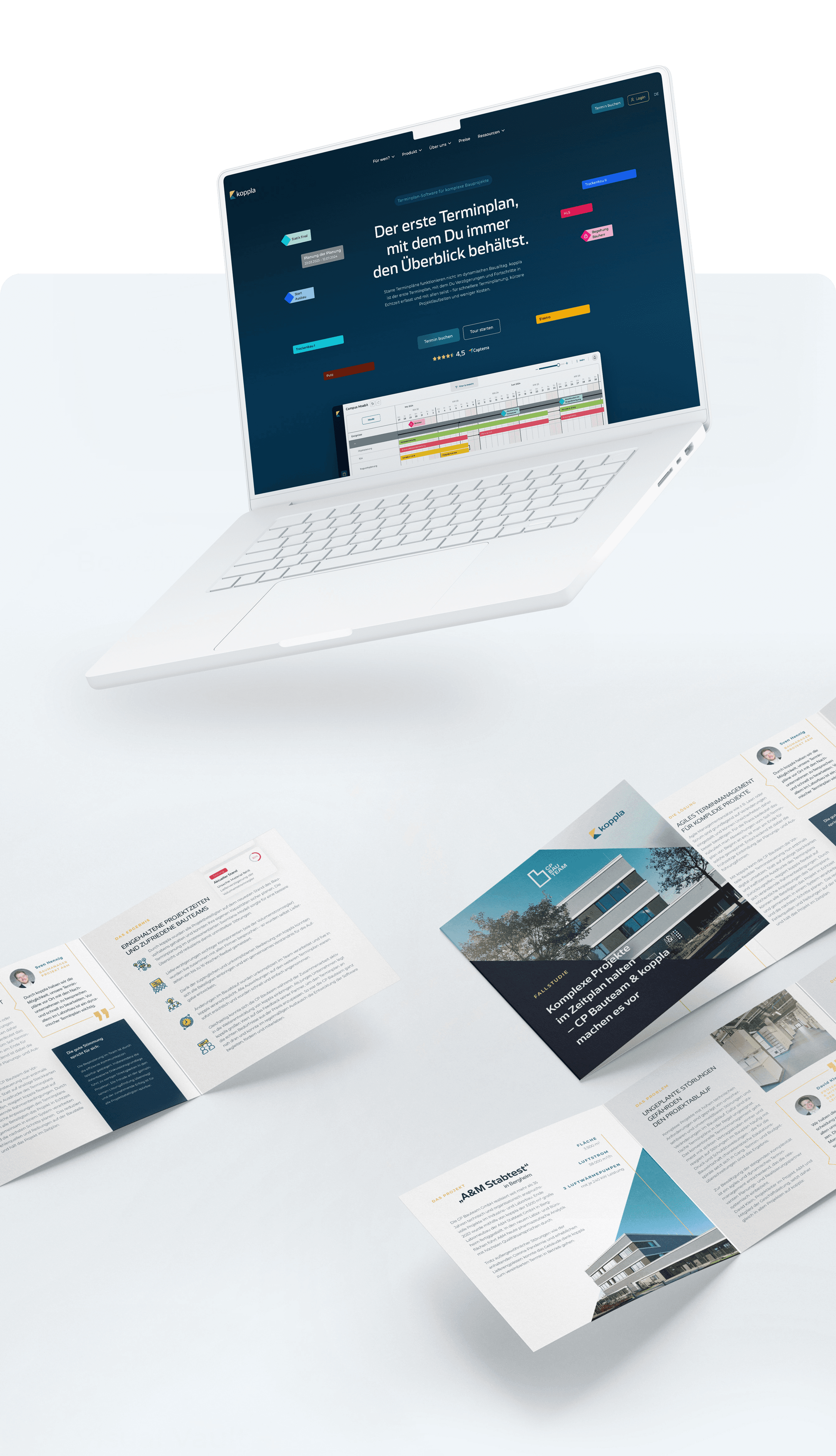 Von der Markenidentität bis zur Produktdefinition: Jeder Schritt im Prozess diente dem Ziel, koppla als starke, nutzerorientierte Plattform in der Baubranche zu positionieren.